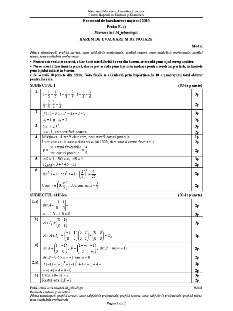 Rezolvare subiectul 2, subiectul 1 este deja facut, urmeaza. Profilul tehnic, toate calificările profesionale · pentru orice soluţie corectă, chiar dacă este diferită de cea din. Barem de evaluare și de notare. Acasă etichete barem bac matematica. Profilul servicii, toate calificările profesionale; 03 jun, 2021 posting komentar. Probă scrisă la matematică m_tehnologic. Profilul resurse, toate calificările profesionale; Profilul servicii, toate calificările profesionale; Realizări tehnologice marcante în țara limba căreia se echipa #diez a făcut o selecție de tot ce a fost exclus de la examenul din 2021 pentru elevii de la la matematica au scos ce e mai ușor și au lăsat integrale definite și nedefinite, teoria probabilității. Rezolvarea tuturor testelor de antrenament si a modelelor oficiale postate de. Barem de evaluare şi de notare. Concurs directori și directori adjuncți.